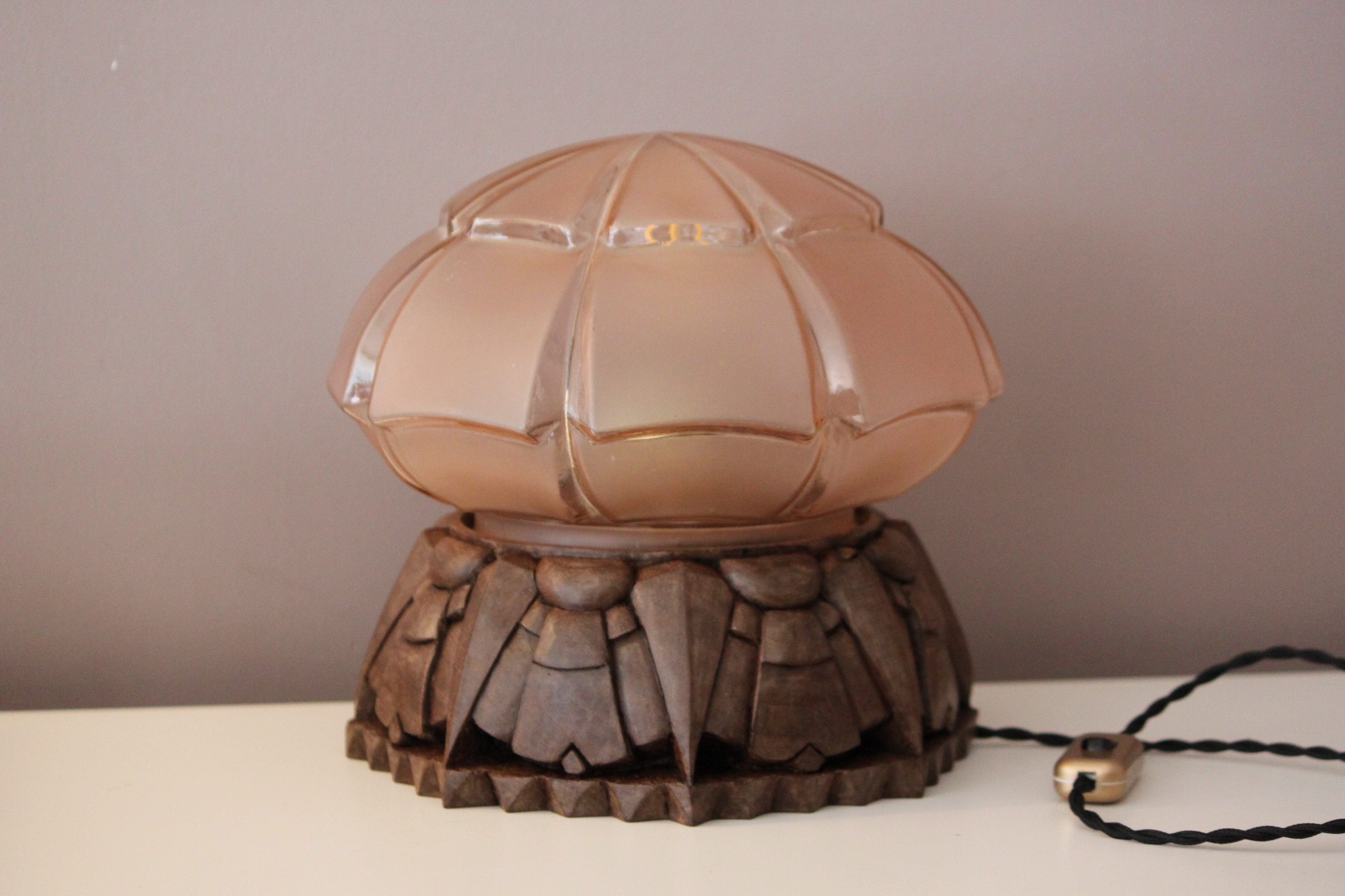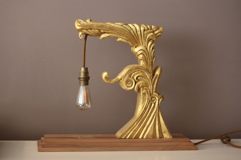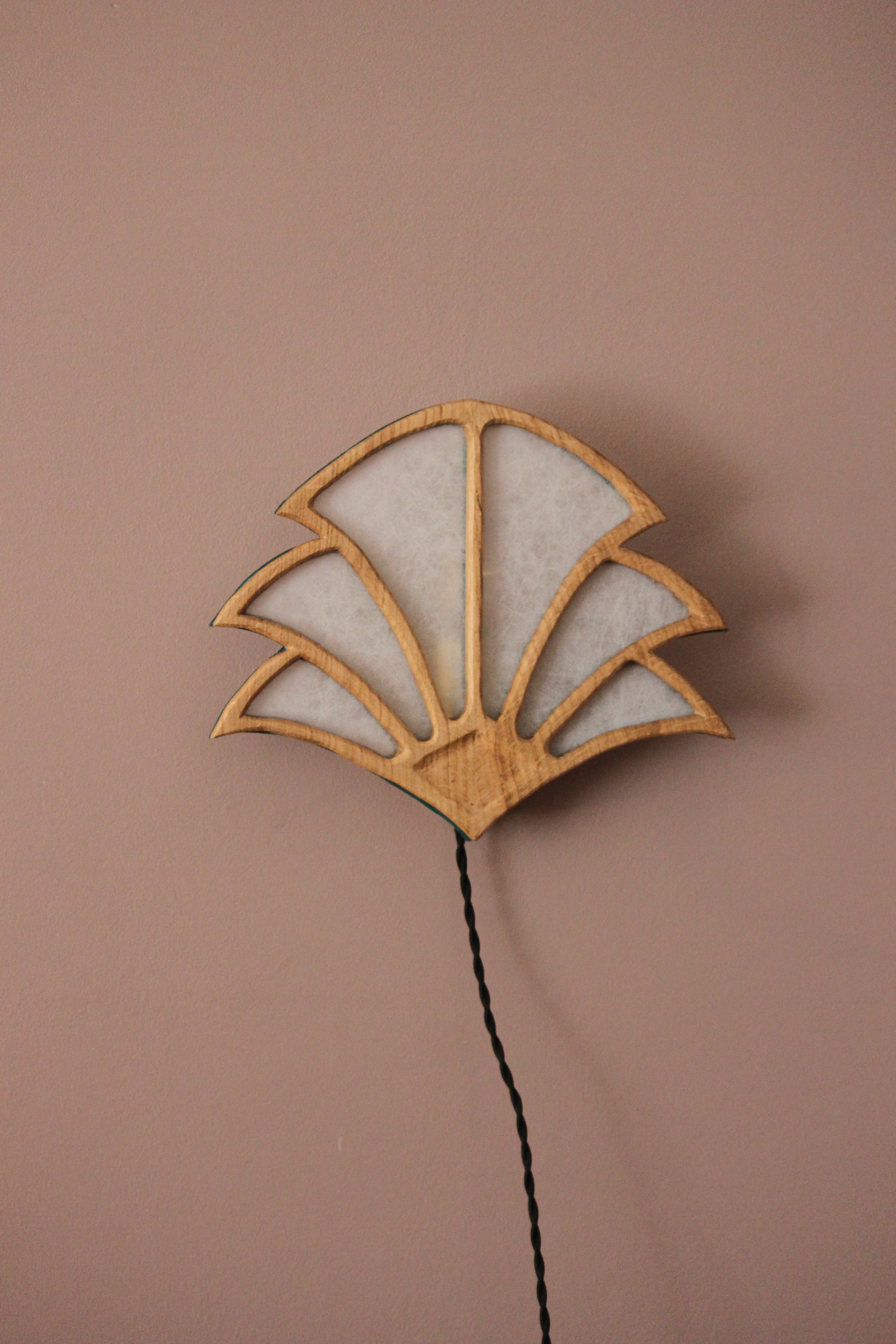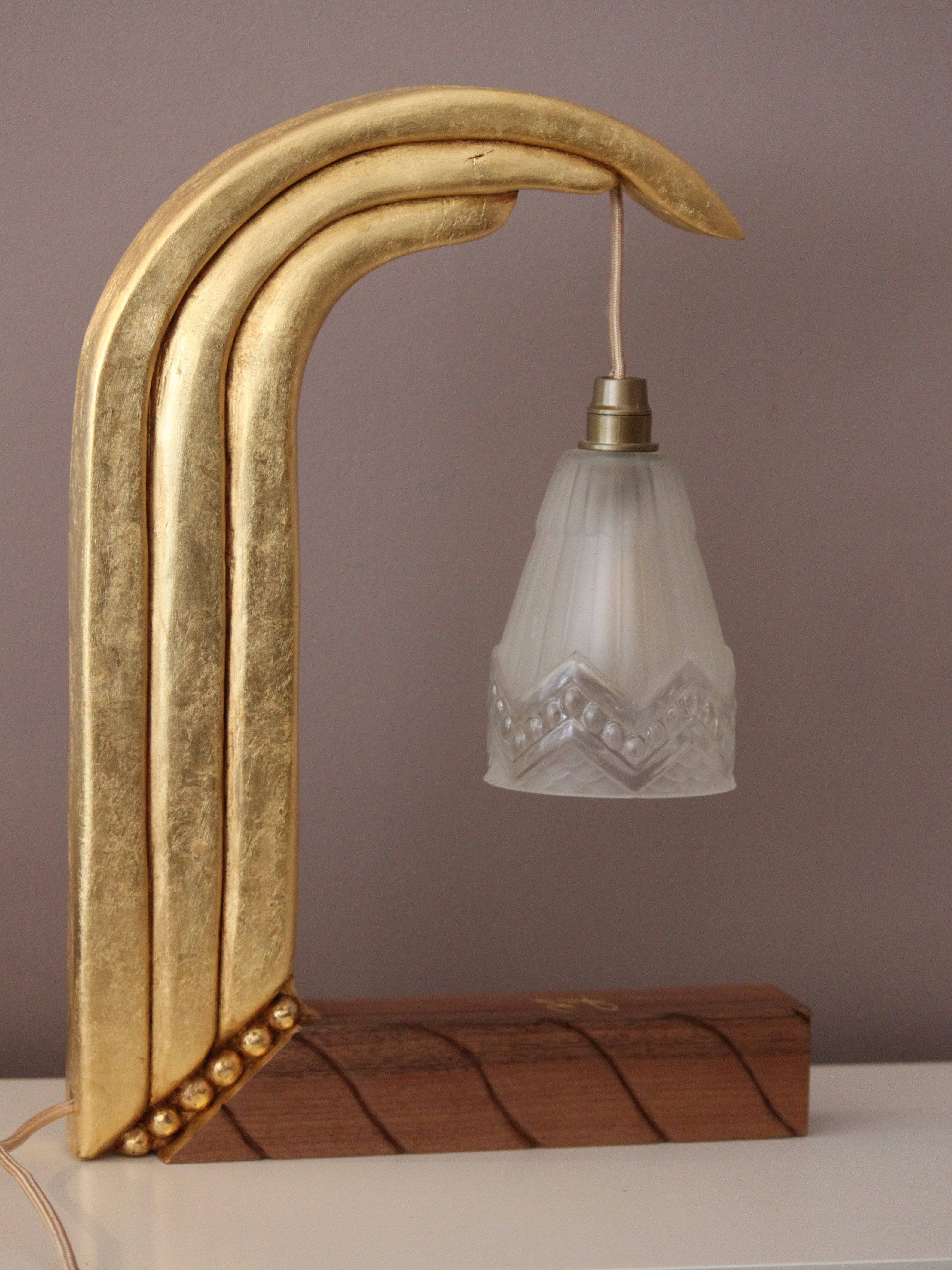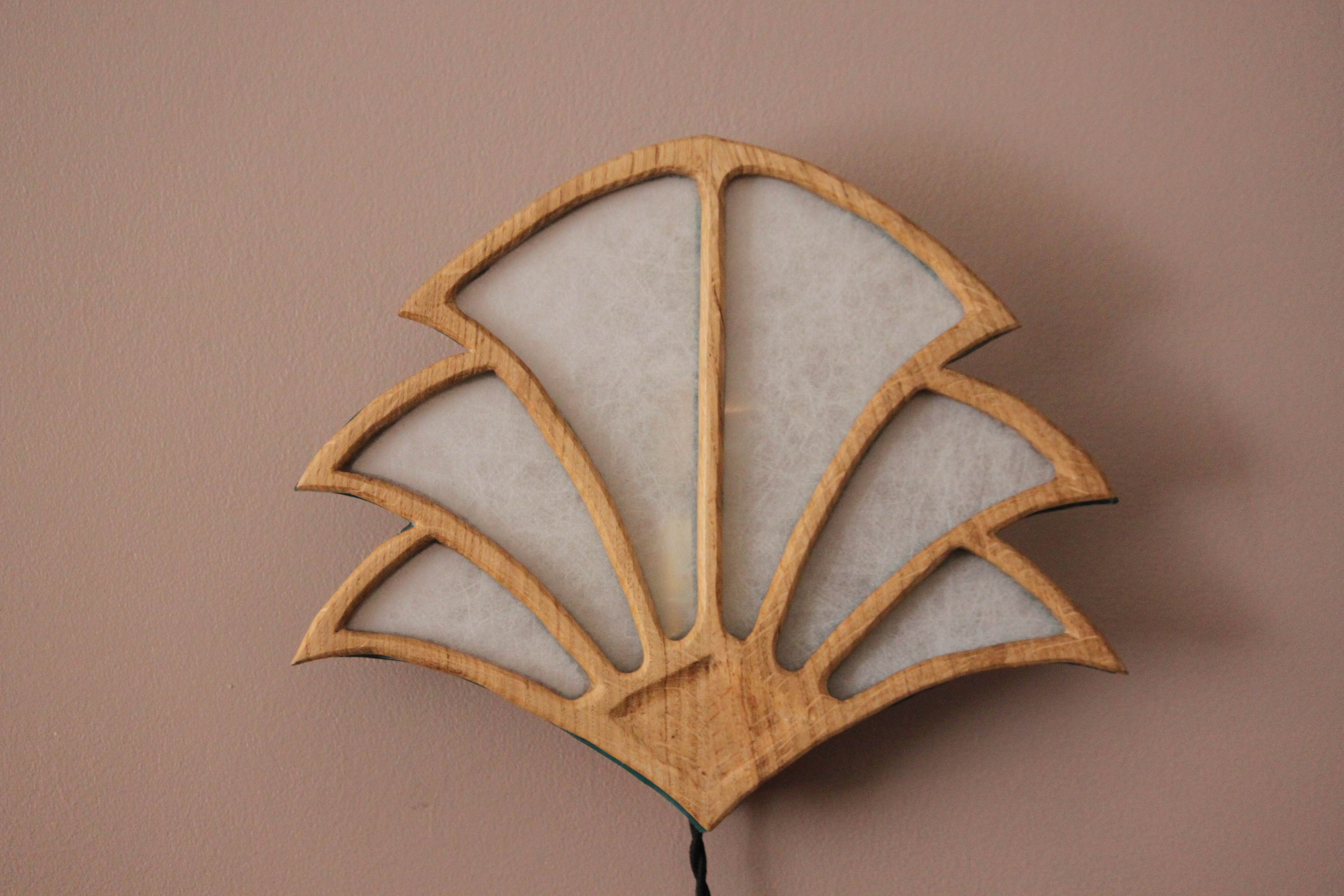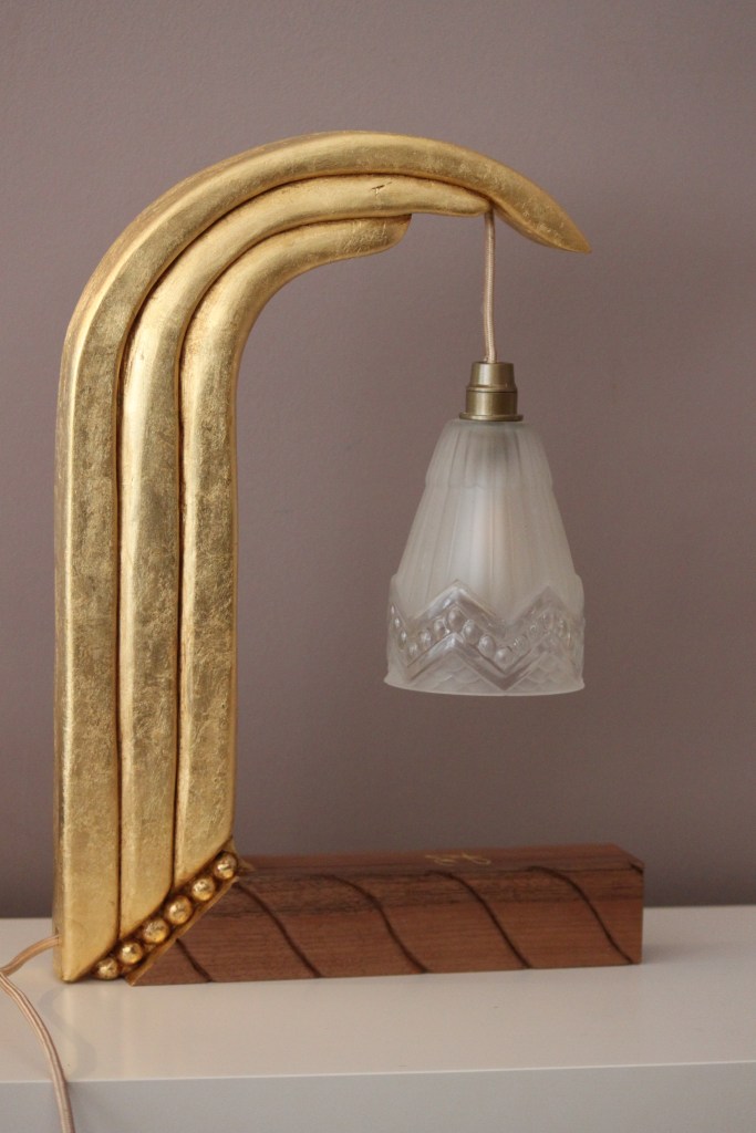 Luminaires d’inspiration Art Déco en bois sculpté.
