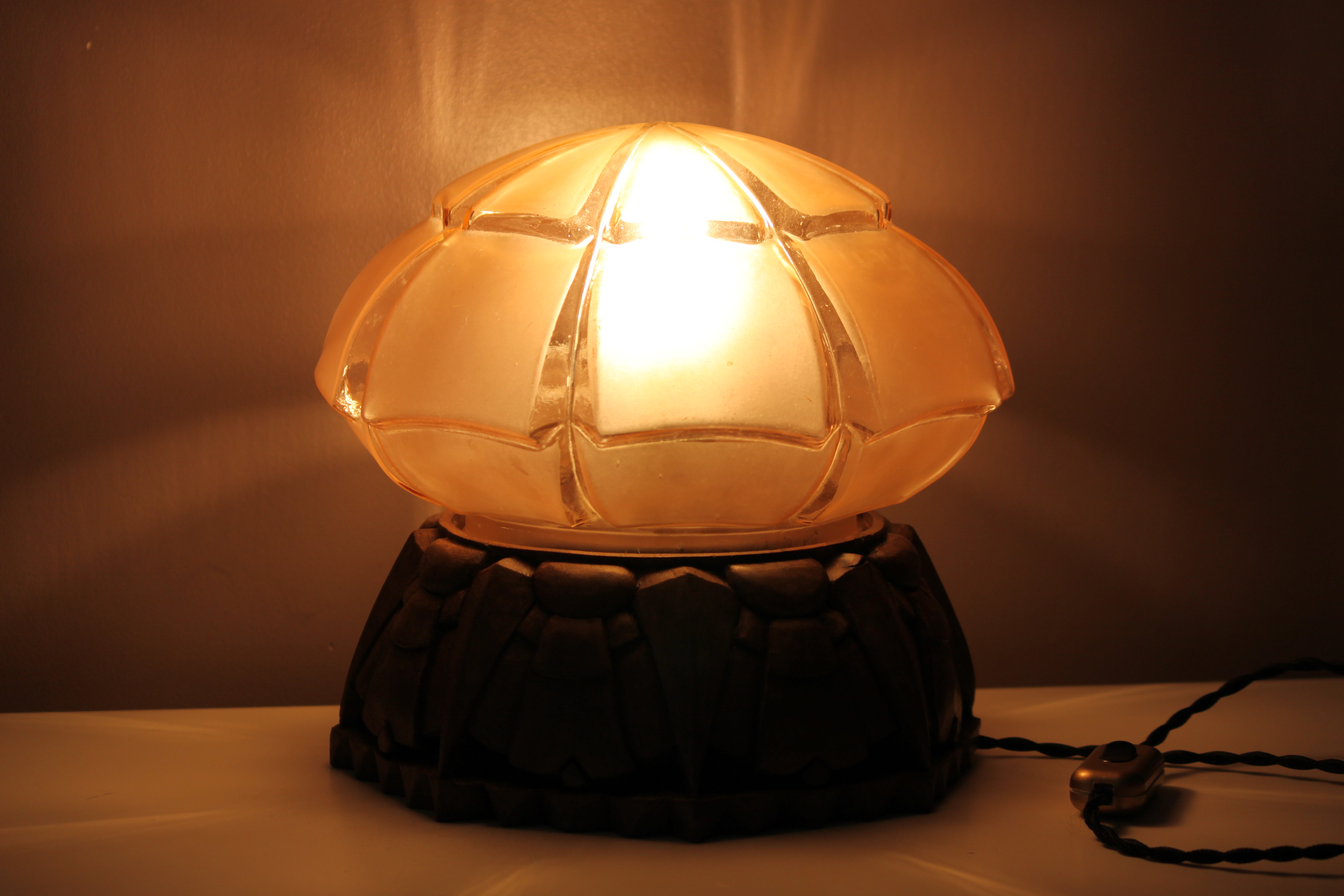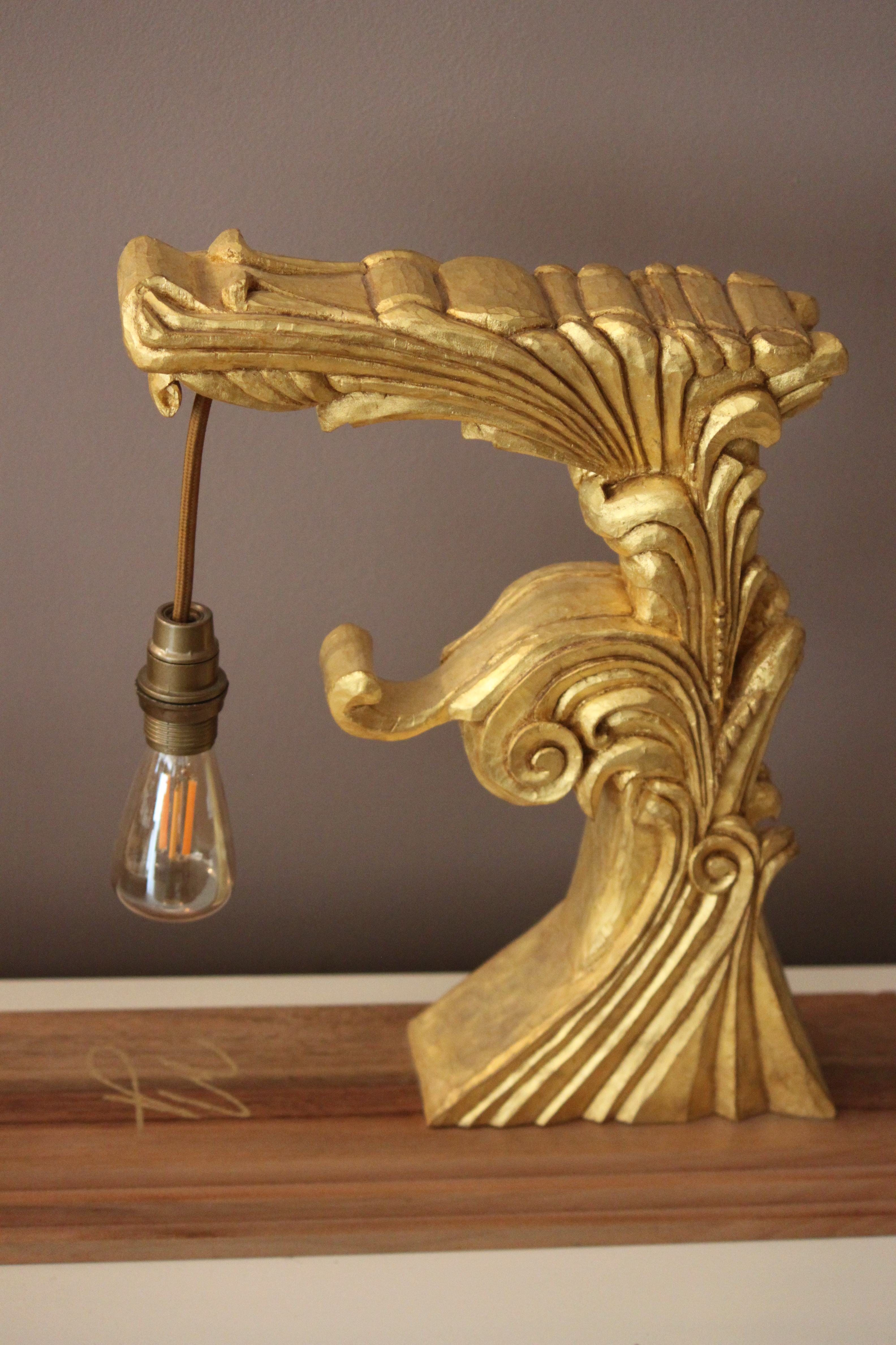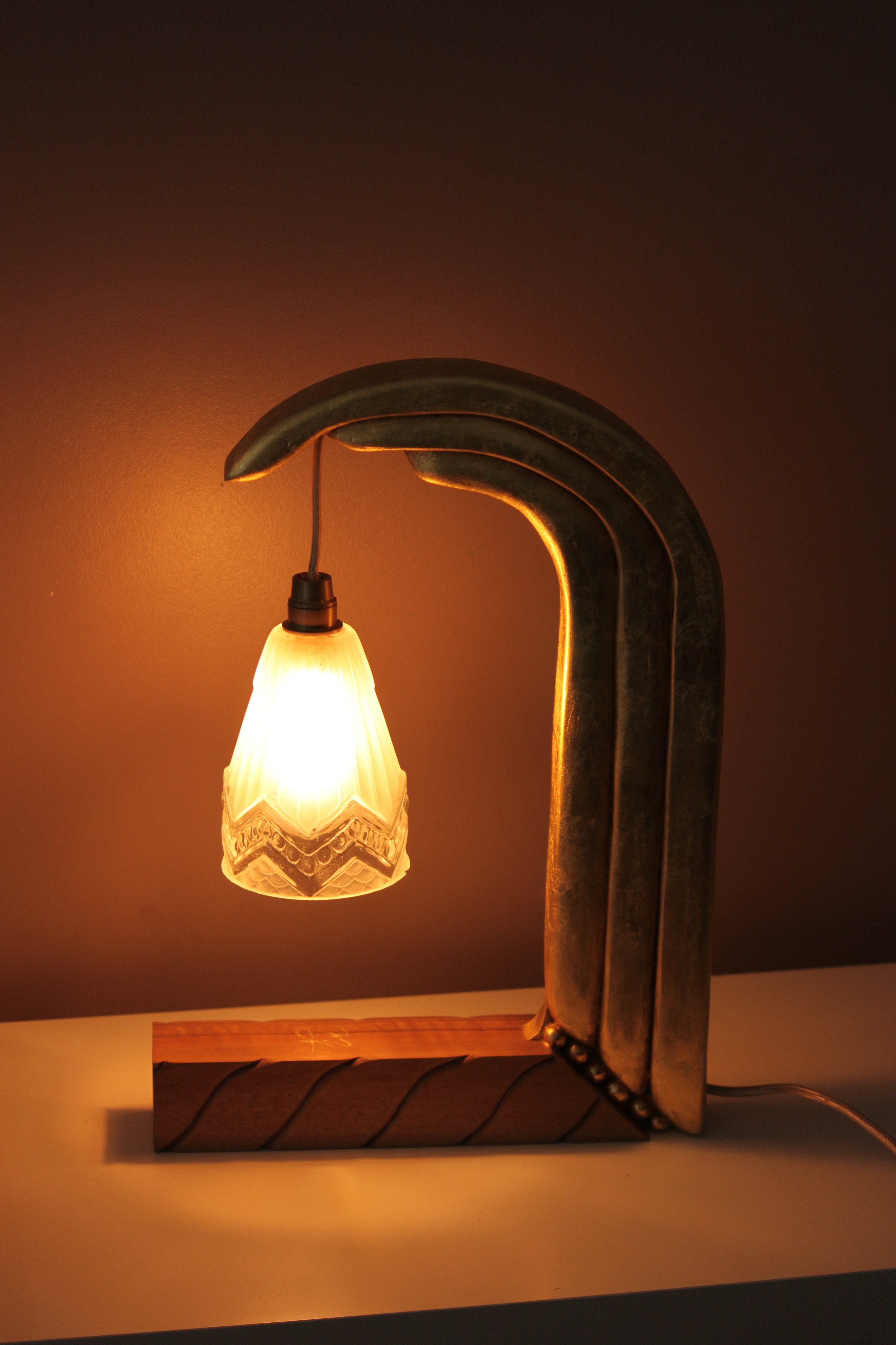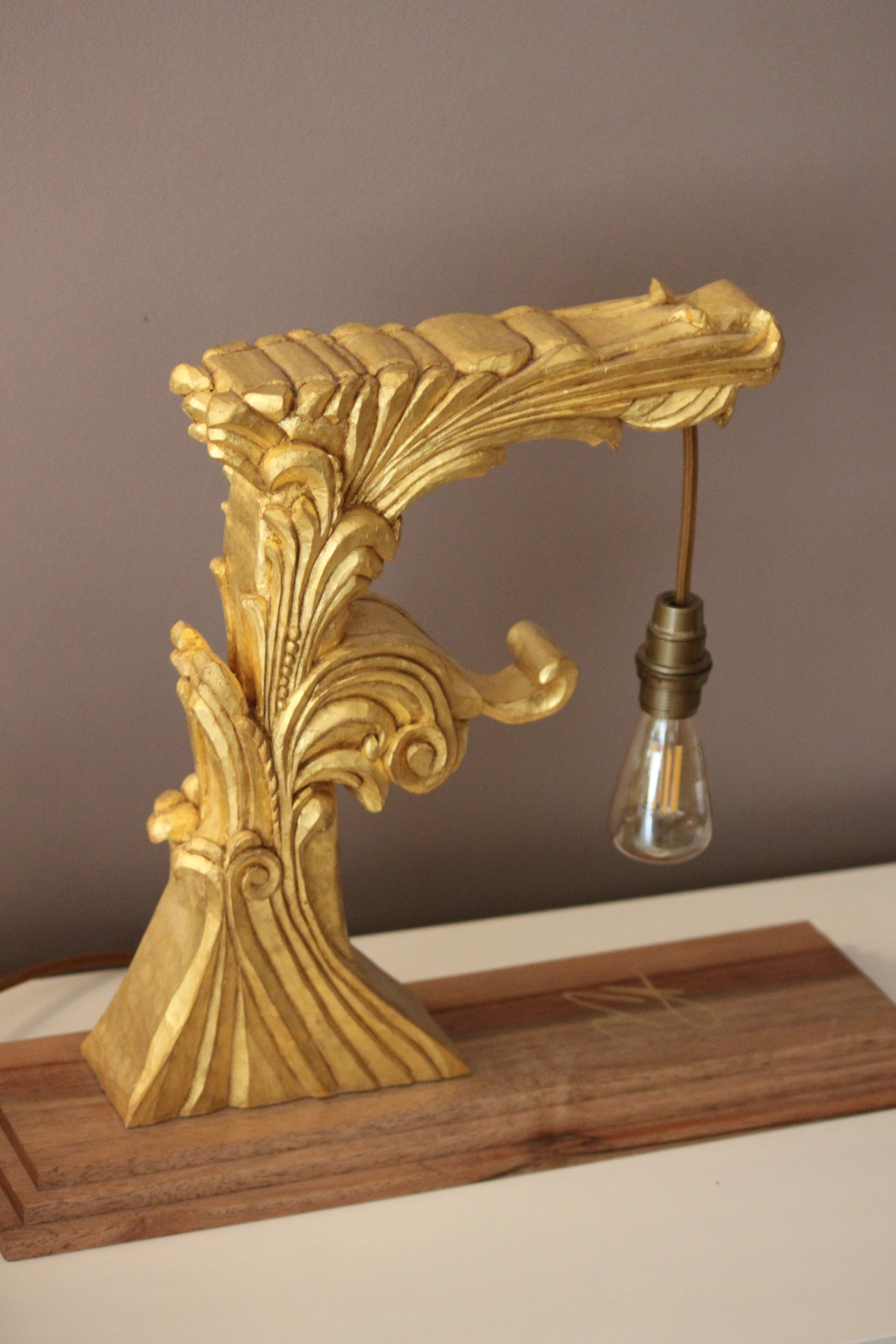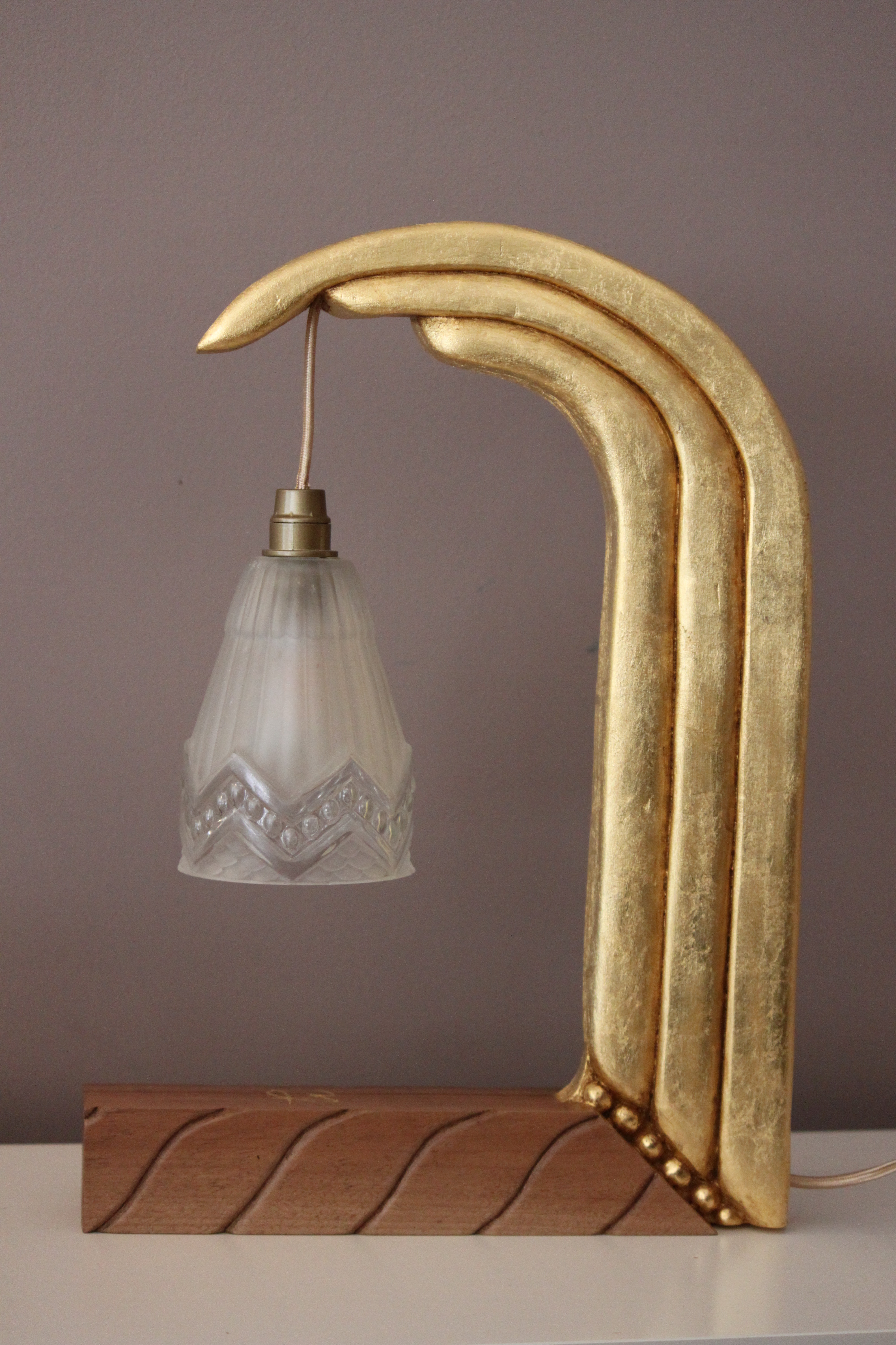 Luminaires d’inspiration Art Déco en bois sculpté.