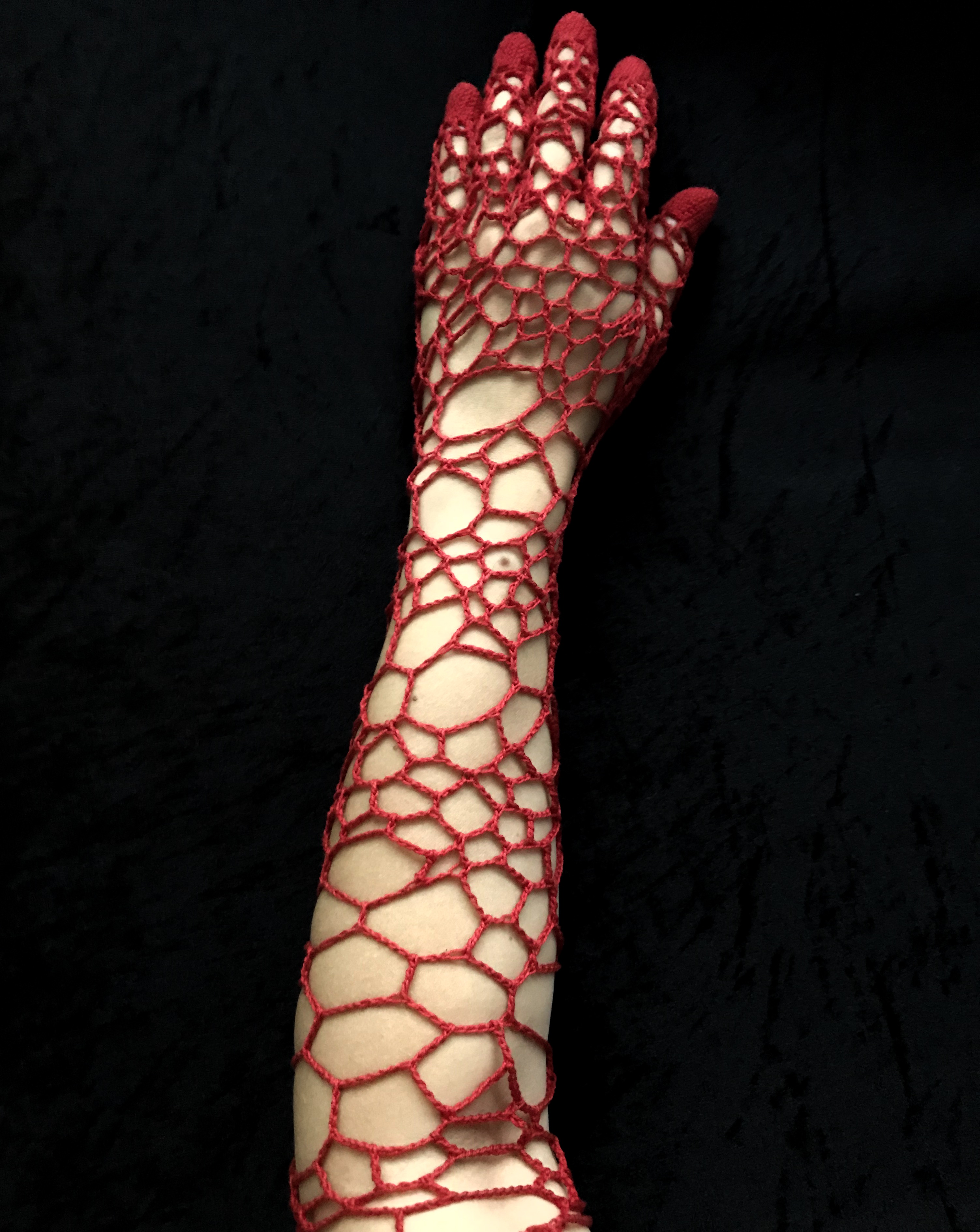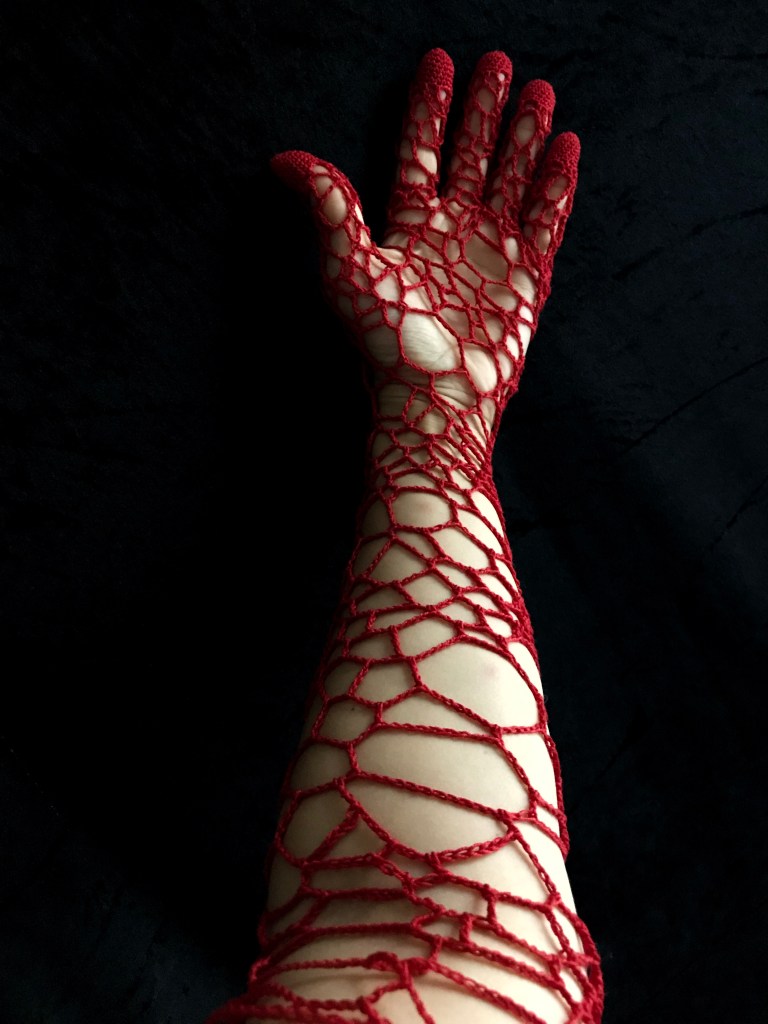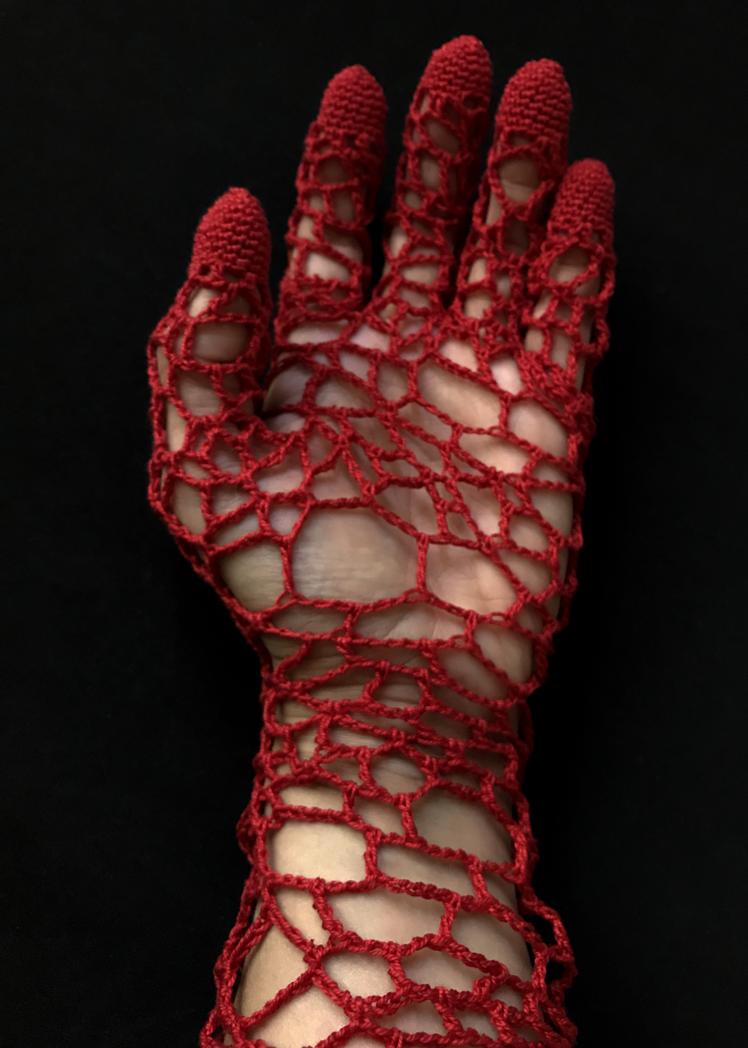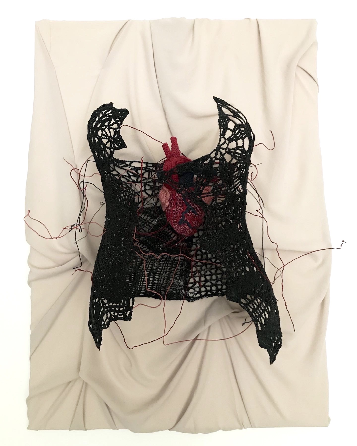 Coton crocheté et polyester, fil de fer galvanisé sur toile et voile de crêpe