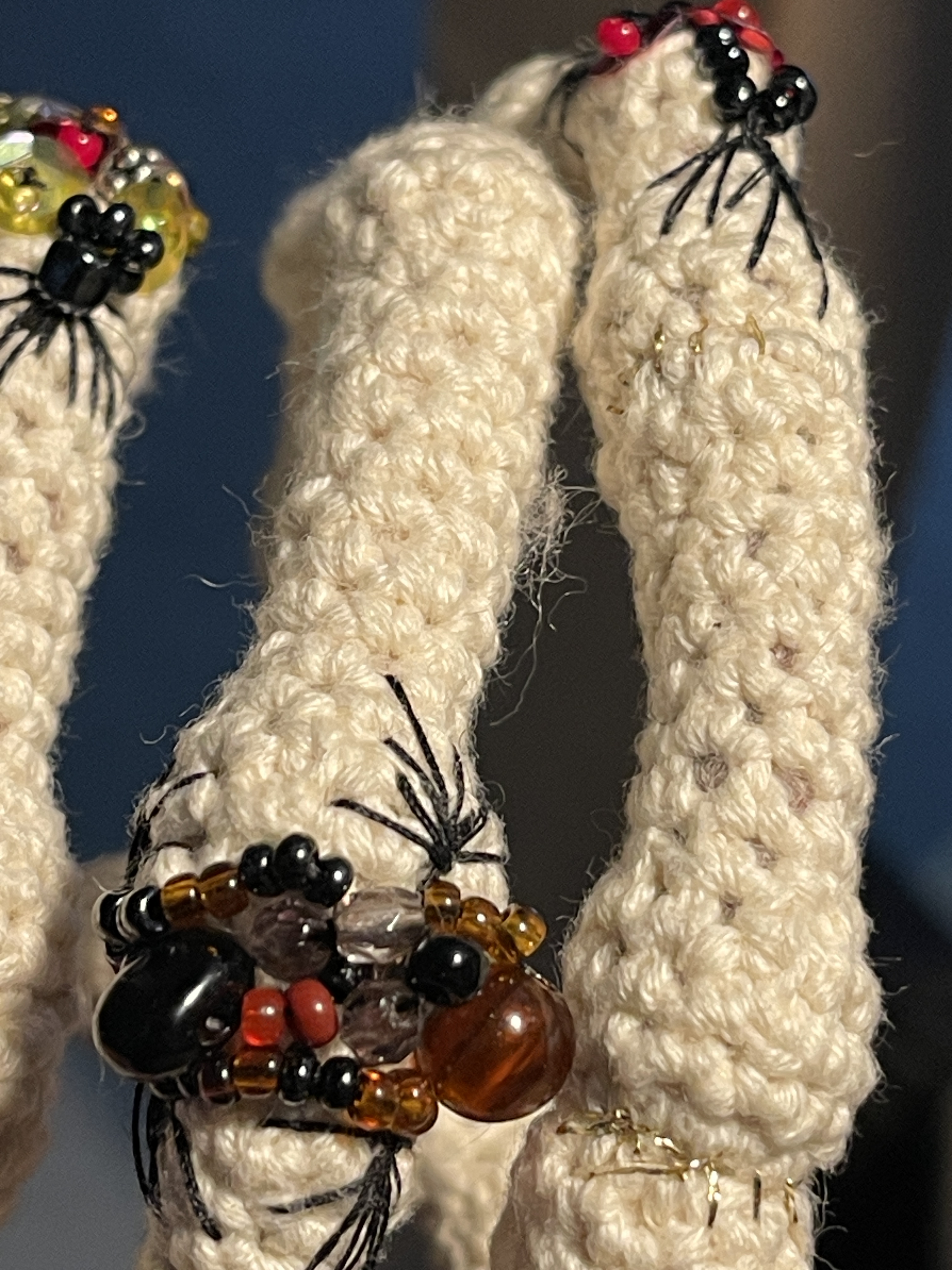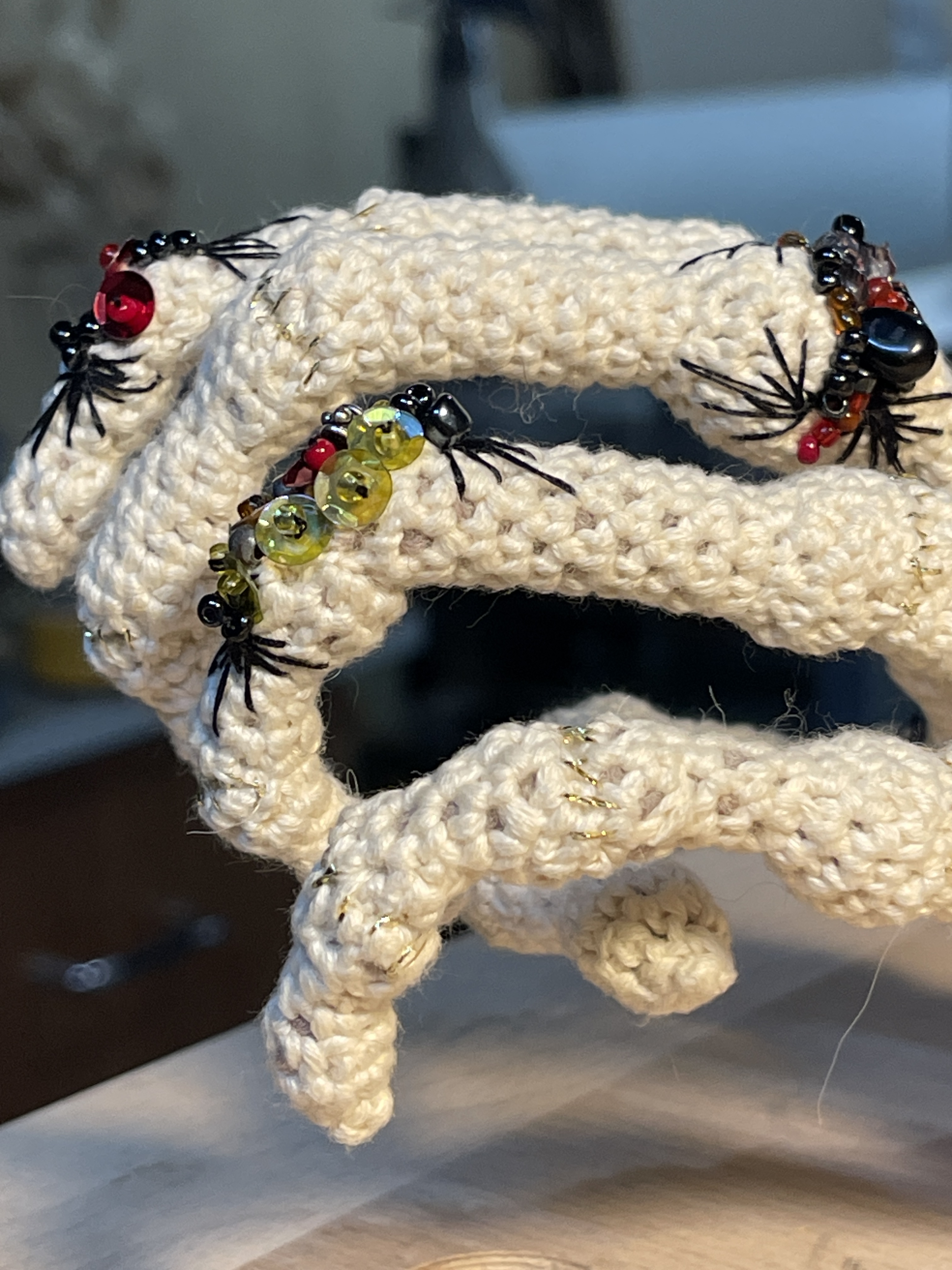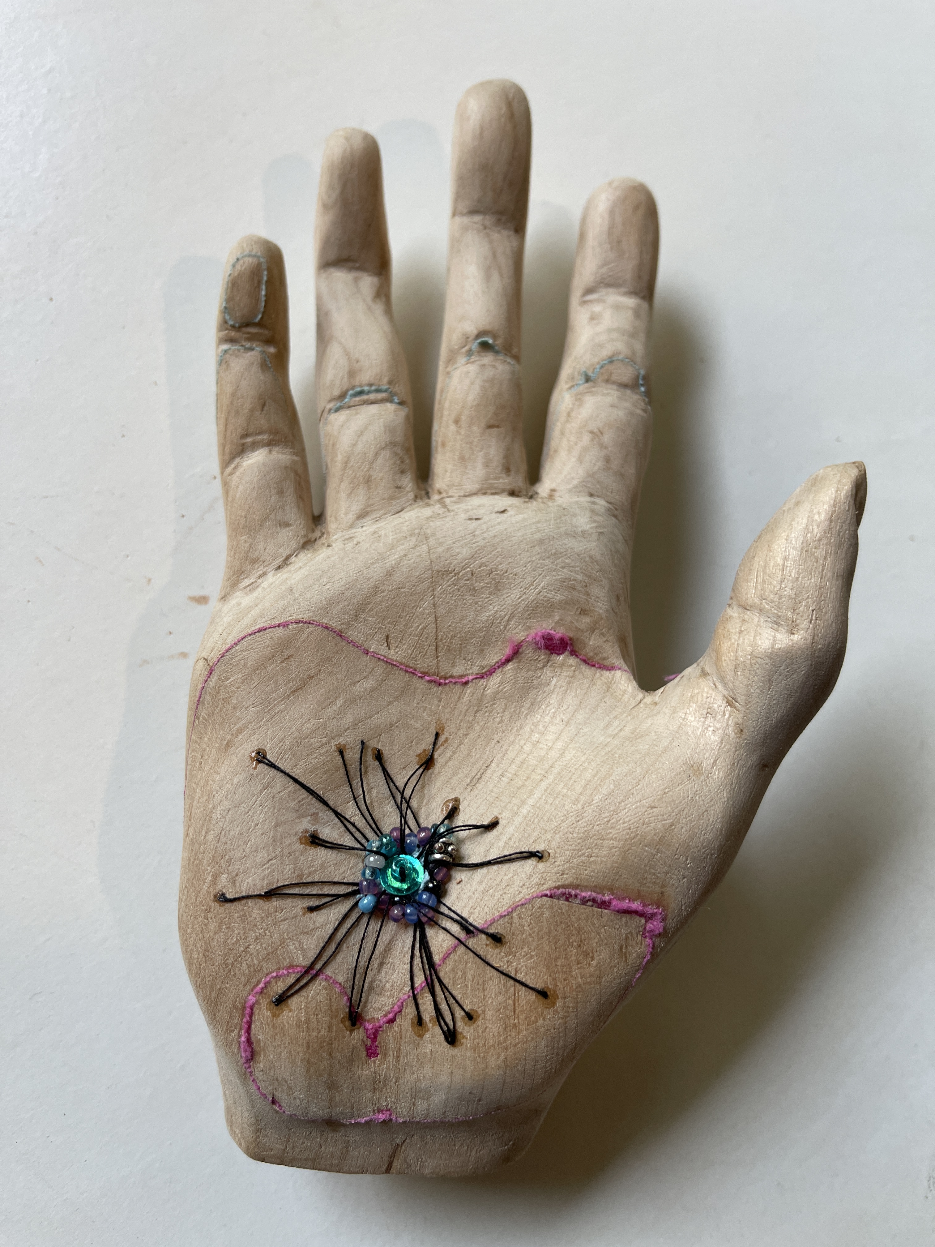 Merisier, mûrier, prunus, noyer, lin, fil de coton, laine, lurex, perles et sequins