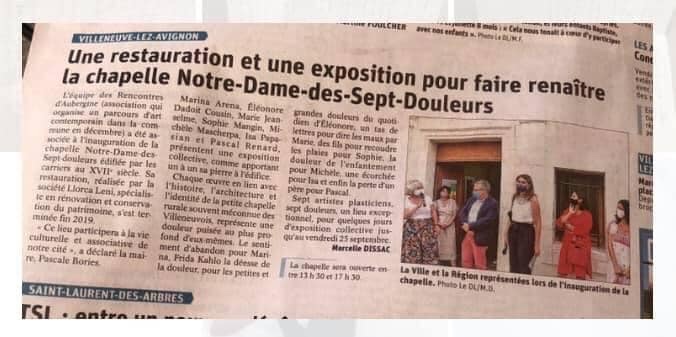 « Sept », exposition collective – Journées du Patrimoine 2020 – Inauguration de la Chapelle Notre Dame des Sept Douleurs